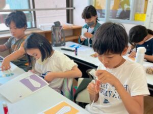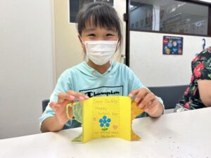通常のレッスンの中に、ファザーズデイウィークとして時間を設け、大好きなお父さんや家族のためにカードを制作しました。