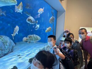 フィールドトリップでは、名古屋港水族館へ行き、職員の方に海洋汚染と海の生物たちの問題について特別講座を行っていただいたときに、何度も何度も手を挙げて自分の意見を伝える子どもたち。
