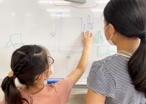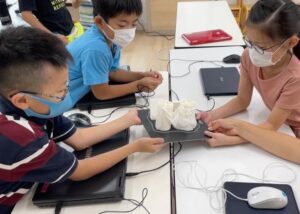 今回のSTEM CAMPでは、子どもたちは、日々教室でジージーと音を立てて動いている3Dプリンターに興味津々。また、難しい3Dモデルの設計にも果敢に取り組んでくれました。子どもたちは、CADのデザインが一番難しかったようです。ただ「CADが難しかったけど、とても楽しかった。」「自分のオリジナルデザインを家で見せたら弟にほしいと言われたので、弟にもあげたい!」など、楽しい意見がたくさん出ました。
