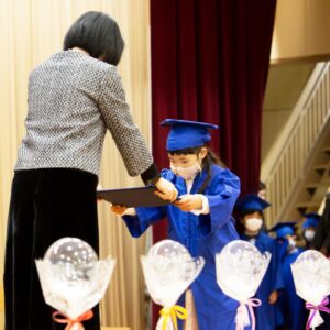 今年度も昨年度に引き続き、会場が密にならないよう、来場者の数を制限させていただくとともに、シニアクラス(年長生)のみで卒園式を行うこととなりました。