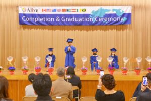 2022年3月23日(水)に、なごのキャンパスの体育館で2021年度アライブインターナショナルプリスクールの卒園式を開催いたしました。