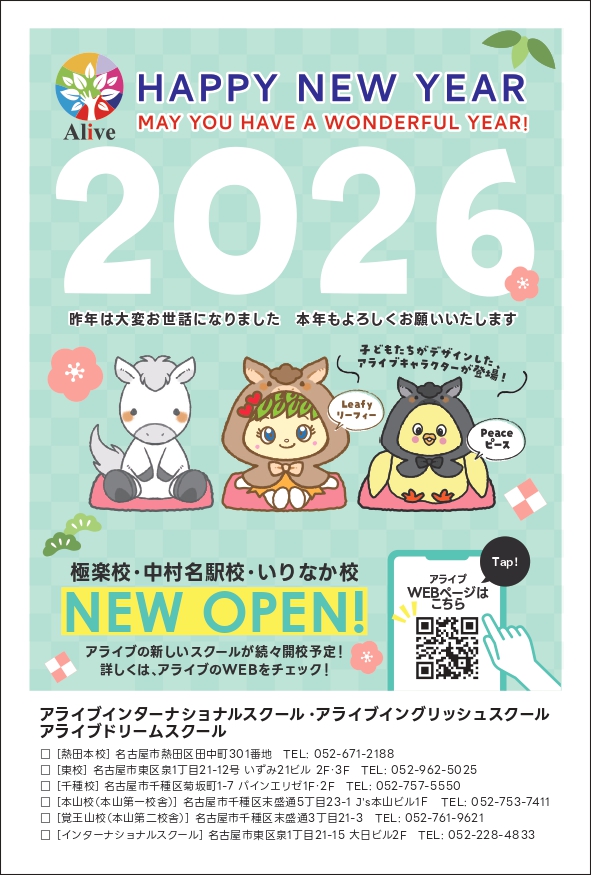 子どもたちの「できた!」「伝わった!」という小さな成功体験を大切にしながら、英語を使って伝える楽しさを感じられるよう、アライブの講師・スタッフ一同、心を込めてレッスンやイベントを行ってまいります。