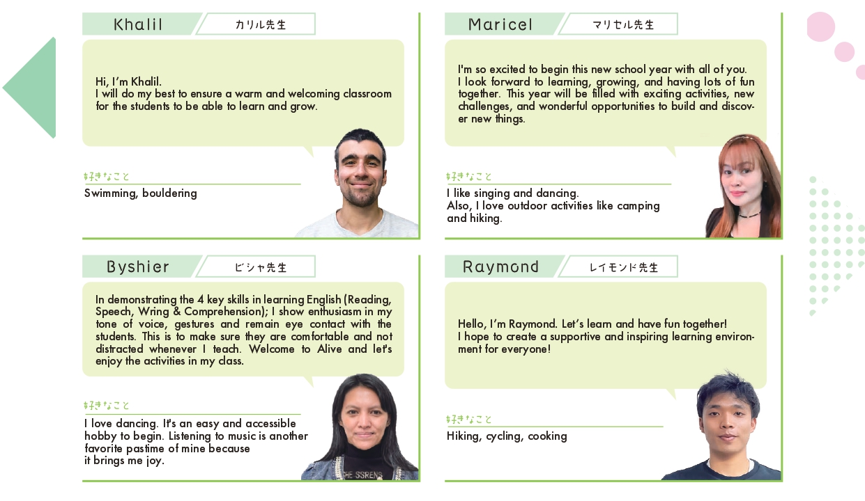 ・楽しくてフレンドリーな、さまざまな国の外国人の先生と交流できる