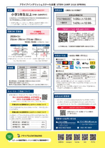 アライブでは、1月25日(水)~28日(土)の4日間、「STEMキャンプ 2026 スプリング」を開催します。