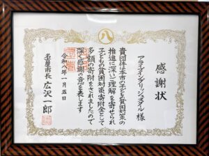 2025年10月26日(日)に開催いたしました「アライブチャリティーハロウィンパーティー2025」における寄付に対し、名古屋市長より感謝状をいただきました。