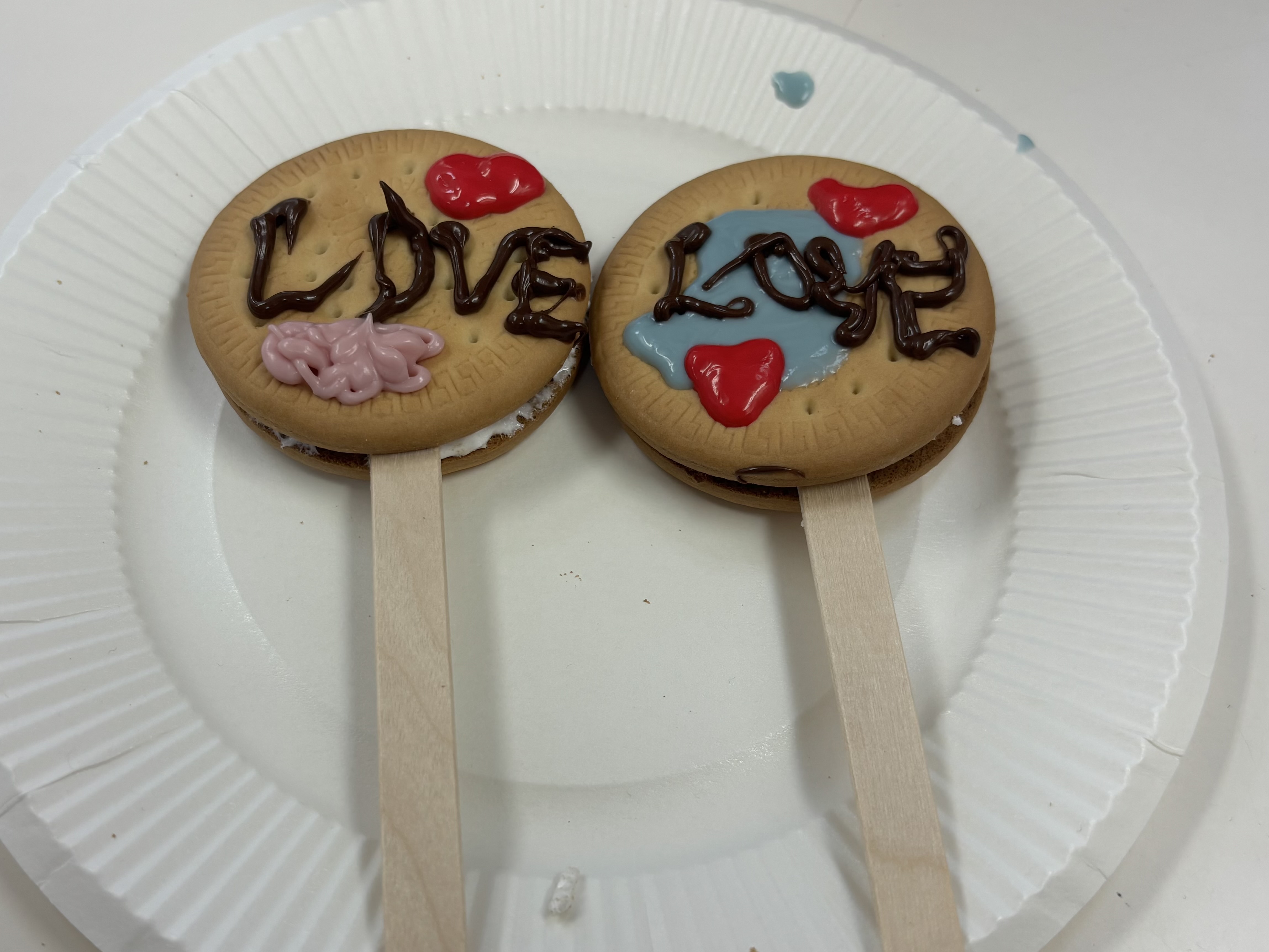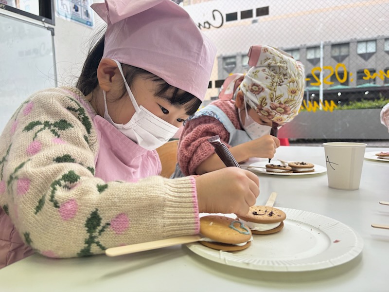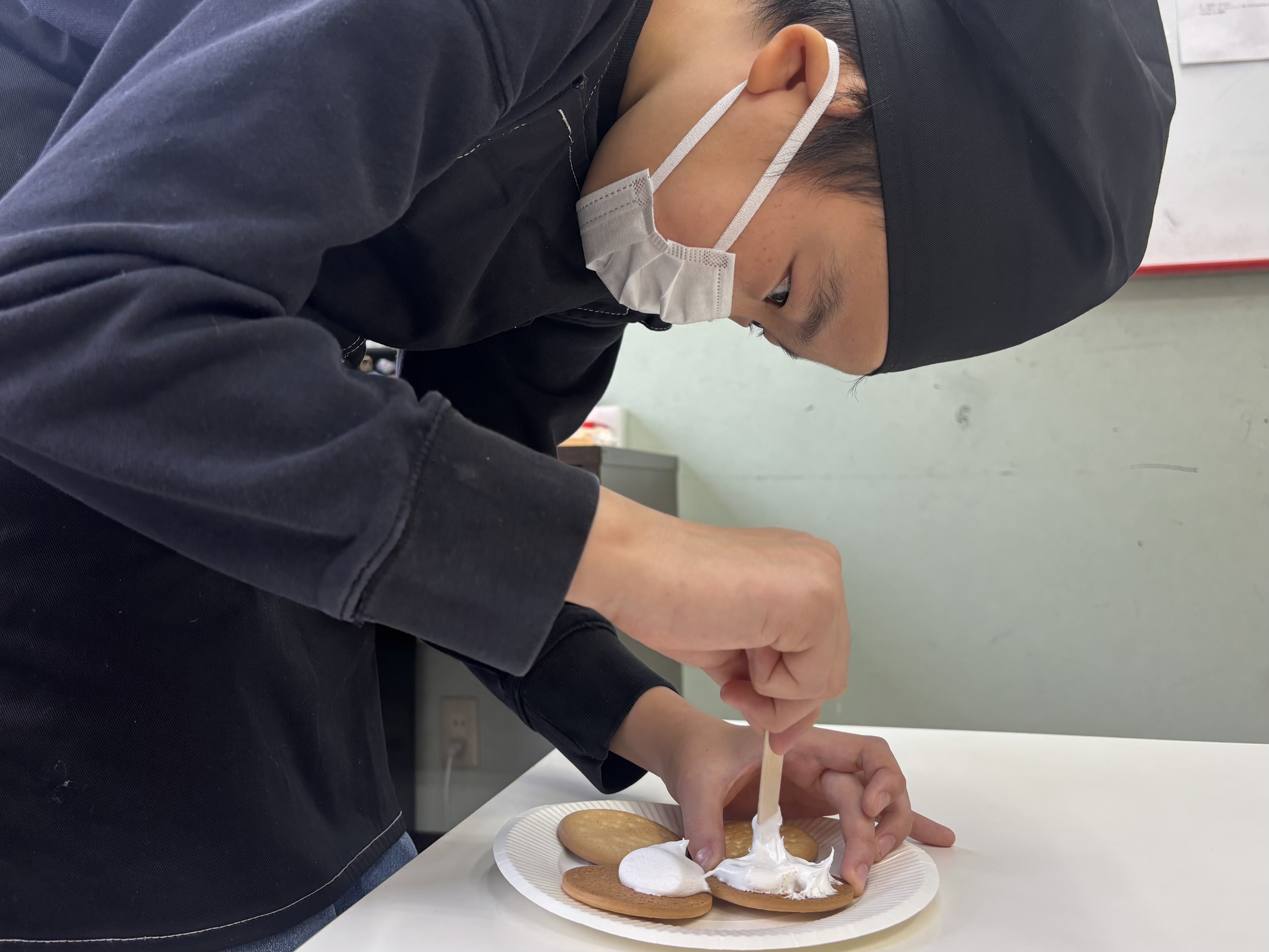 マシュマロクッキー作りでは、溶かしたマシュマロをクッキーにサンド。