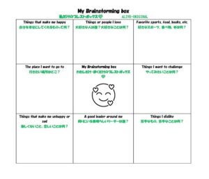 今回は、この③「自分の意見を伝える」ため、自分のことを知る方法や自分の考えを整理する方法についてご紹介します。海外の小学校でも多く行われている、自分のアイディアを引き出す、ブレインストーミングです。