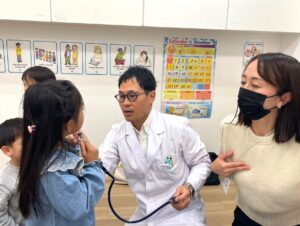 ※実は国枝内科さんには、アライブの外国人の先生たちが診察でお世話になっているのです。アライブのジュリウス先生も、よく知っている顔見知りの先生なので楽しんでイベントに参加していました!