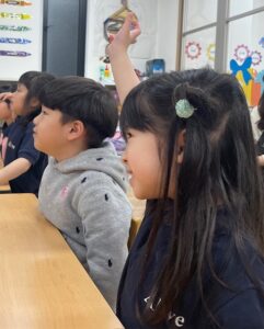 保護者の皆さまが見学する中、子どもたちは元気いっぱいで、私たちのほうが緊張していました(苦笑)。保護者の皆さまにもよくお伝えしていますが、アライブインターナショナルスクールの子どもたちは、本当に明るく、優しく、元気です。そして、それはとても素晴らしいことですね。