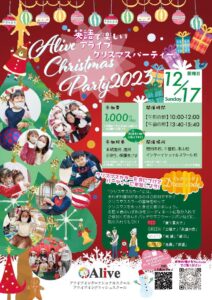 アライブの皆さんは、今年はどのようなクリスマスを過ごされますでしょうか。その前に…ぜひ、12月17日(日曜日)には、一足早いアライブ・クリスマスパーティーにご参加くださいね。講師、スタッフともども、アライブの子どもたちの素敵な思い出をつくります!