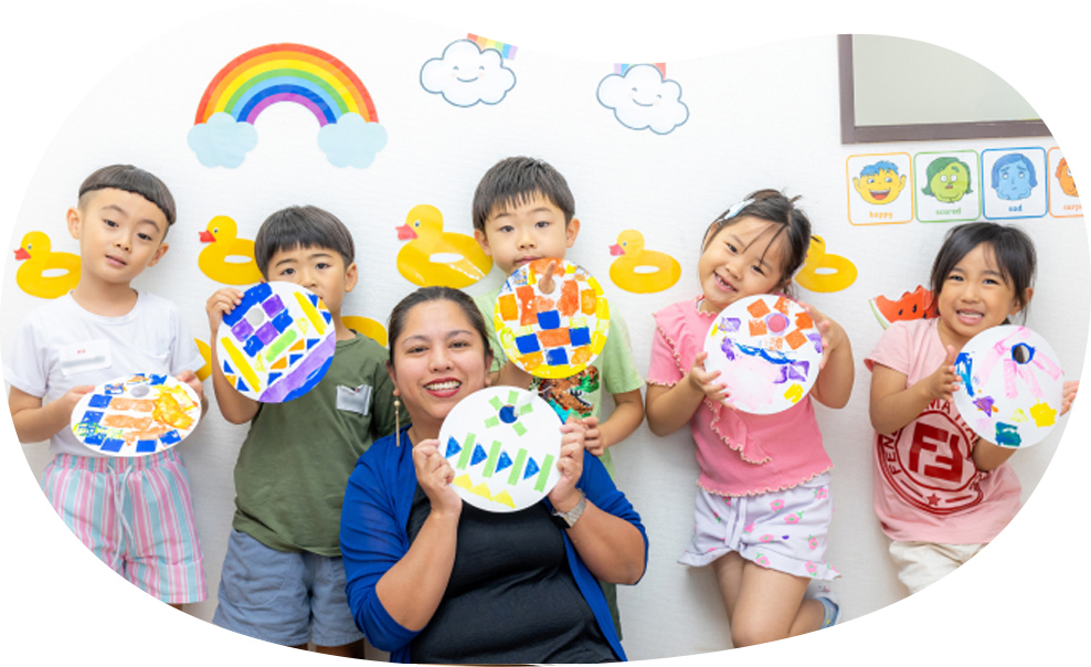 翌年度に園児になるお子さまを対象とした特別クラスです。歌やダンスに加えて、フォニックス(英語の音のルール)の基礎や、簡単な英語表現を通して語彙力をぐんと伸ばすベースを築きます。キンディクラス(年少クラス)にスムーズに進級できるよう、英語への興味と自信を育てる準備がしっかり整います。「時間が長いかな…」とご心配の保護者さまもご安心ください。好奇心を刺激する楽しいアクティビティが盛りだくさんで、お子さまは飽きることなく笑顔いっぱいで過ごせます。