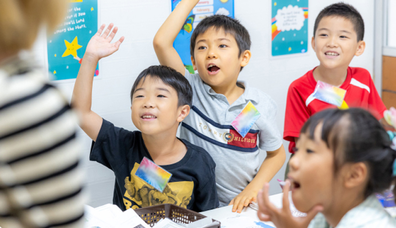 アクティビティやディスカッションを通して、楽しみながらボキャブラリーを増やし、表現力を磨いていきます。フォニックスやリーディングのレッスンで、読み書きも少しずつ学んでいきます。学ぶたびに「わかった!」「言えた!」が増えていく、手応えのあるクラスです。